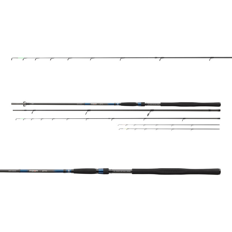 N‘Zon Pro Staff Feeder – vynikající výkon a kvalita! Řada N‘Zon Pro Staff Feeder je třída sama o sobě – je určena pro rybáře, kteří nechtějí dělat kompromisy. Tyto pruty zaujmou ultra rychlou akcí, štíhlými blanky a dokonale vyváženou konstrukcí. Díky použití exkluzivního uhlíkového materiálu HVF Nanoplus značky DAIWA byly vyvinuty extrémně lehké a zároveň výjimečně odolné blanky, které se po nahození okamžitě vrací do původní polohy a poskytují precizní přesnost. Použití technologie X45X výrazně snižuje kroutící a točivý moment a podporuje přesné nahazování na velkou vzdálenost. Ergonomicky tvarované sedlo navijáku Air Sensor z uhlíkového kompozitu zajišťuje dokonalé a pevné spojení s navijákem. EVA rukojeť s exkluzivním designem Armlock zaručuje maximální pohodlí při zdolávání a manipulaci. Tato řada nabízí ten pravý model pro každou výzvu při lovu na feeder – od method feederu na kratší vzdálenosti až po extra silné verze na těžká krmítka a silné proudy. Modely Method Feeder se vyznačují parabolickou akcí s decentní páteří, která je ideální pro lov kaprů na krátkou vzdálenost. Měkká akce dokonale tlumí všechny výpady a snižuje riziko ztráty ryby. Ideální pro lov kaprů, cejnů a línů. Modely Power Feeder jsou vyvinuty pro lov ve větších vzdálenostech. Díky své poloparabolické akci a rychlé konstrukci blanku se tyto pruty dokonale ohýbají při nahazování a poskytují působivě dlouhé a přesné náhozy. Nabízejí vynikající kontrolu a preciznost i při souboji s velkými rybami na velkou vzdálenost. Pruty Medium Feeder nabízejí velmi štíhlou konstrukci blanku a jsou univerzálními pruty pro lov v lehčích proudech nebo na stojatých vodách. Jsou rychlé, lehké a vyvážené, přesně nahodí vaši sestavu na velké vzdálenosti a nabízejí velké silové rezervy pro souboj s velkými rybami. Modely Distance a Power Distance Feeder jsou navrženy pro maximální výkon a kontrolu. Vyznačují se silnou páteří, rychlou akcí a obrovskou silovou rezervou – ideální pro silné proudy, velká krmítka a lov ve velké vzdálenosti. Špičky jsou vybaveny většími očky, aby si poradily s šokovými návazci. Řada N‘Zon Pro Staff Feeder je navržena tak, aby splňovala nejvyšší standardy.
