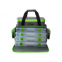 Tyto plně voděodolné a vysoce odolné EVA tašky s tkanou 3K strukturou poskytují dokonalou ochranu proti vodě a lze je snadno čistit. Vodoodpudivé zipy na hlavních oddílech zabraňují pronikání dešťové vody dovnitř. Horní, menší přihrádka (34 x 20 x 7.5cm nebo 25.5 x 16.5 x 7.5cm) je připevněna suchým zipem a v případě potřeby ji lze snadno vyjmout. Horní přihrádky nabízejí prostor pro nástrahy, velké příslušenství apod. Kromě toho lze horní přihrádku připevnit přímo k opasku a používat ji jako samostatnou brašnu u pasu. Velká verze se dodává se 4 krabičkami na bižuterii o rozměrech 36 x 21.5 x 4.5cm. Malá verze se dodává se 3 krabičkami na bižuterii o rozměrech 27 x 18 x 4cm. S ramenním popruhem a poutky pro přenášení.